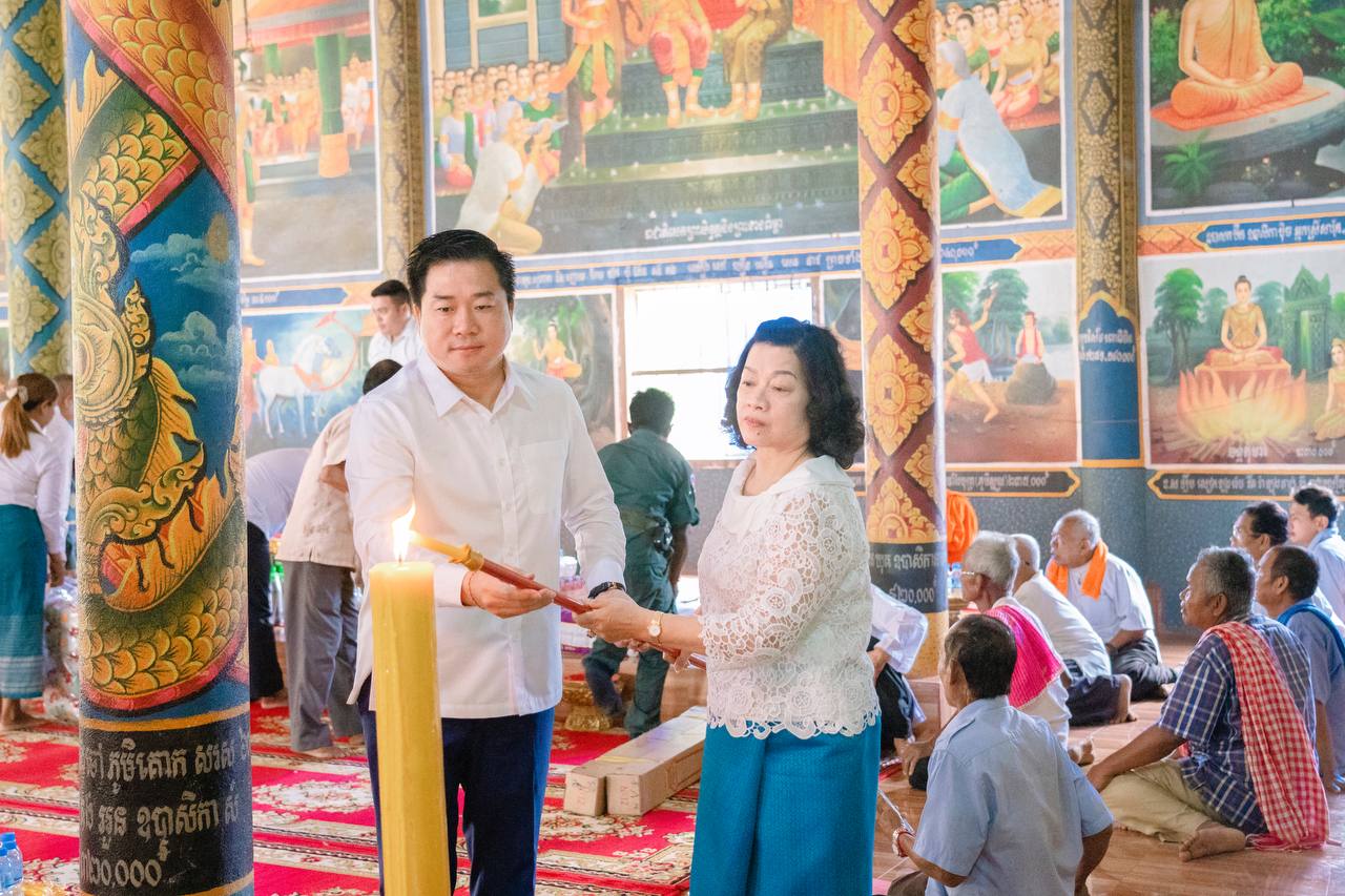 ដោយក្នុងមួយវត្តប្រគេននូវថវិកាចំនួន ៦០០,០០០រៀល ទៀនវស្សា១គូរ,អង្ករ១បេ(៥០គីឡូ),ស្លាដក់១,ទឹកផ្លែឈើ ២កេស,មី ២កេស,ទឹកបរិសុទ្ធ ២កេស,តែ១គីឡូ,កាហ្វេ ២ថង់ធំ,ទឹកដោះគោខាប ១០កំប៉ុង,ស្ករស ៥គីឡូ,ទឹកត្រី ៤យួរ,ទឹកស៊ីអ៉ីវ ៤យួរ,ត្រីខ ២យួរ,ស្ពីកំប៉ុង ១កេស និងមីសួរ ១យួរ ស្មើនឹង ៥គីឡូផងដែរ។ហើយបានឧបត្ថម្ភថវិការជូនកងកម្លាំងអាវុធហត្ថ ២នាក់,កម្លាំងប៉ុស្តិ៍រដ្ឋបាល ២នាក់